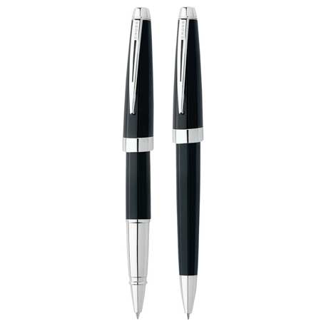 DescriptionStriking set that is a classic emblem of success. The Aventura Set features a stunning onyx black resin finish in both a ballpoint and roller ball for the complete writing experience. The Cross® lifetime mechanical guarantee and premium gift packaging complete your writing experience.