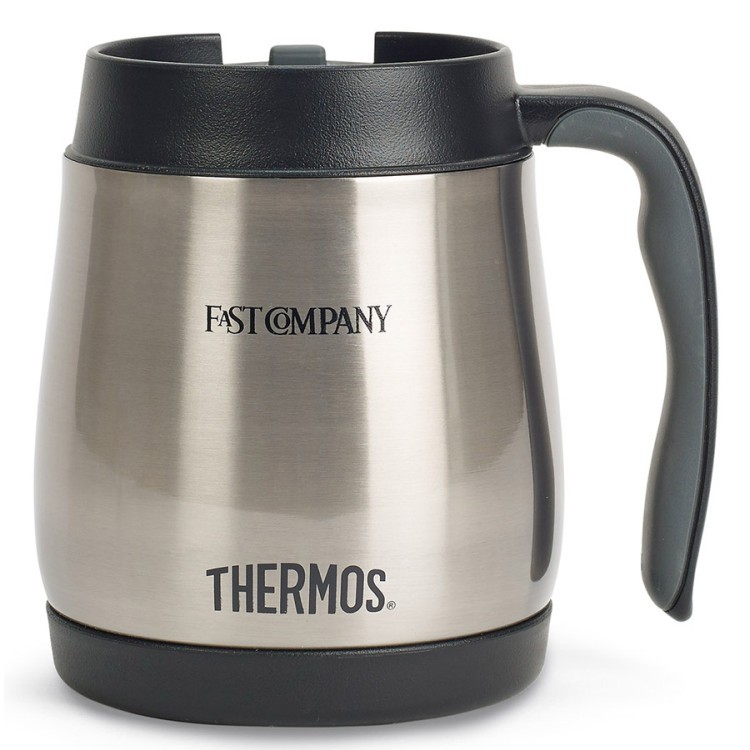 DescriptionThermos™ vacuum insulation technology for maximum temperature retention. Flip-up lid is easy to use and clean. Ergonomically designed handle is comfortable to grip. Integrated handle and lid for convenience. Durable stainless steel interior and exterior. Sweat-proof design won’t leave water rings. Fingerprint resistant exterior clear coat. Keeps hot for 3 hours. Keeps cold for 12 hours. 16 oz