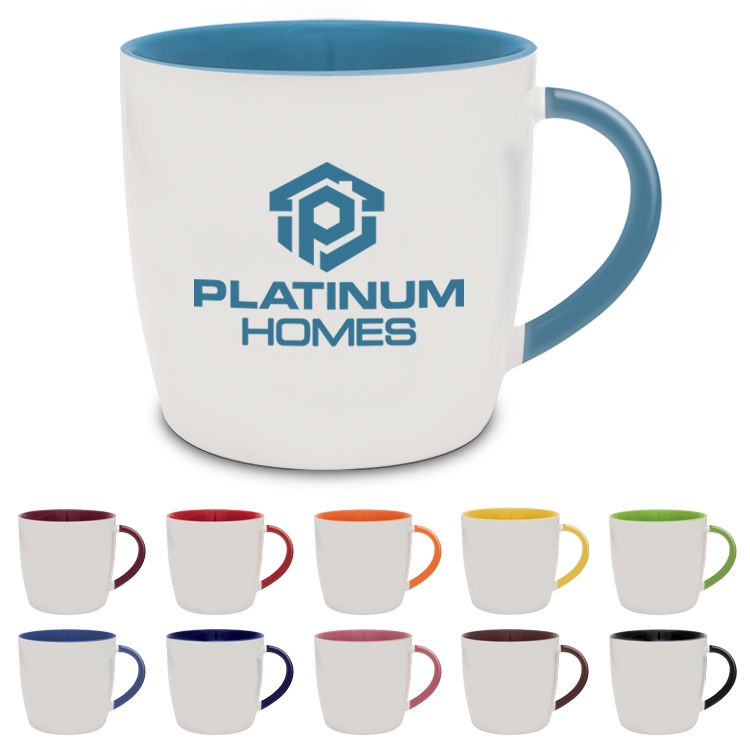 Due to the individual craftsmanship of "Duo-Tone mug collections variances do occur in the color portions of the glaze and may result in dissimilarities in ceramics. Second side imprint $.60(c), plus $50.00(g) Screen per color.