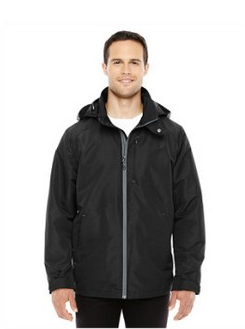 DescriptionShell: 4.57 oz/yd2 / 155 gsm, 100% polyester dobby with water resistant finish; Lining: 100% polyester mesh in hood and body; 100% polyester taffeta in sleeves; Partial storm flap with metal snaps at top with zip-off multi-adjustable hood; Center front reverse coil zipper with autolock slider and toggle; Chest pocket with invisible zipper closure; Security pocket with audio port; Lower pockets with reverse coil zippers; Adjustable shockcord at hood and hem; Audio port; Outer jacket; interactive